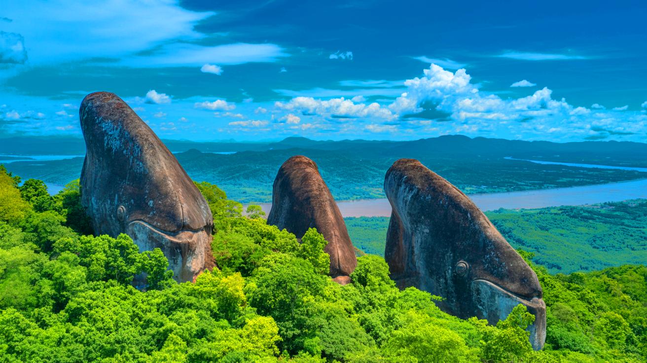 In the heart of Thailand, a unique geological spectacle draws the attention of visitors. The Three Whales Rock, locally known as Hin Sam Wan, is a striking rock formation nestled within Phu Sing Forest Park. These rocks, dating back 75 million years, have been sculpted by erosion and tectonic movements, creating silhouettes that remind one of whales swimming together. This site, located near the border with Laos, offers a breathtaking view of the surrounding landscape, enriching the experience of hikers and nature lovers.